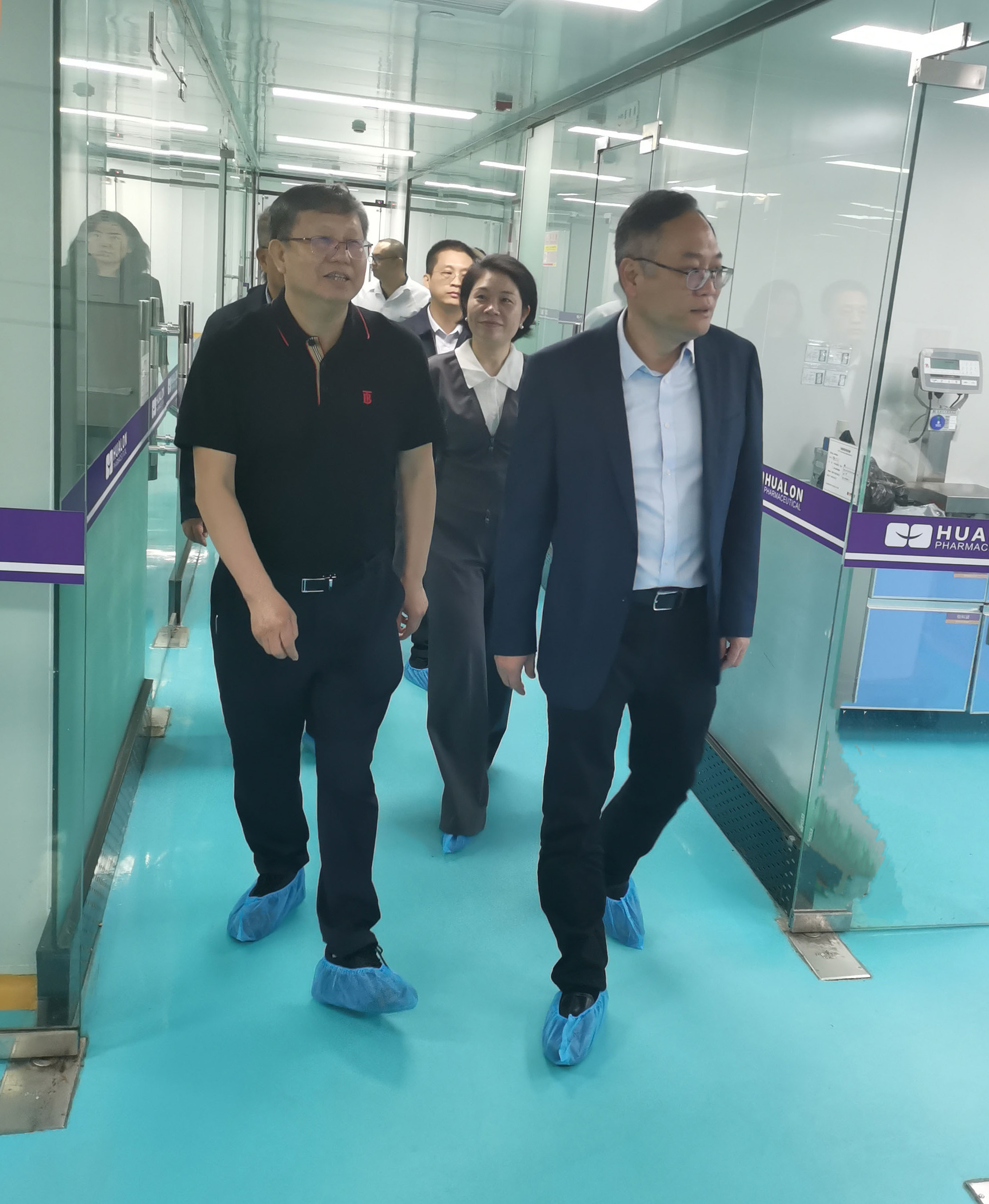 丁飛主席一行參觀了公司展廳、企業(yè)技術研發(fā)中心,詳細了解了企業(yè)的發(fā)展歷程、產品研發(fā)創(chuàng)新情況。參觀過程中,丁飛主席高度肯定和贊揚了皇隆制藥深植海南醫(yī)藥行業(yè)的發(fā)展歷程。