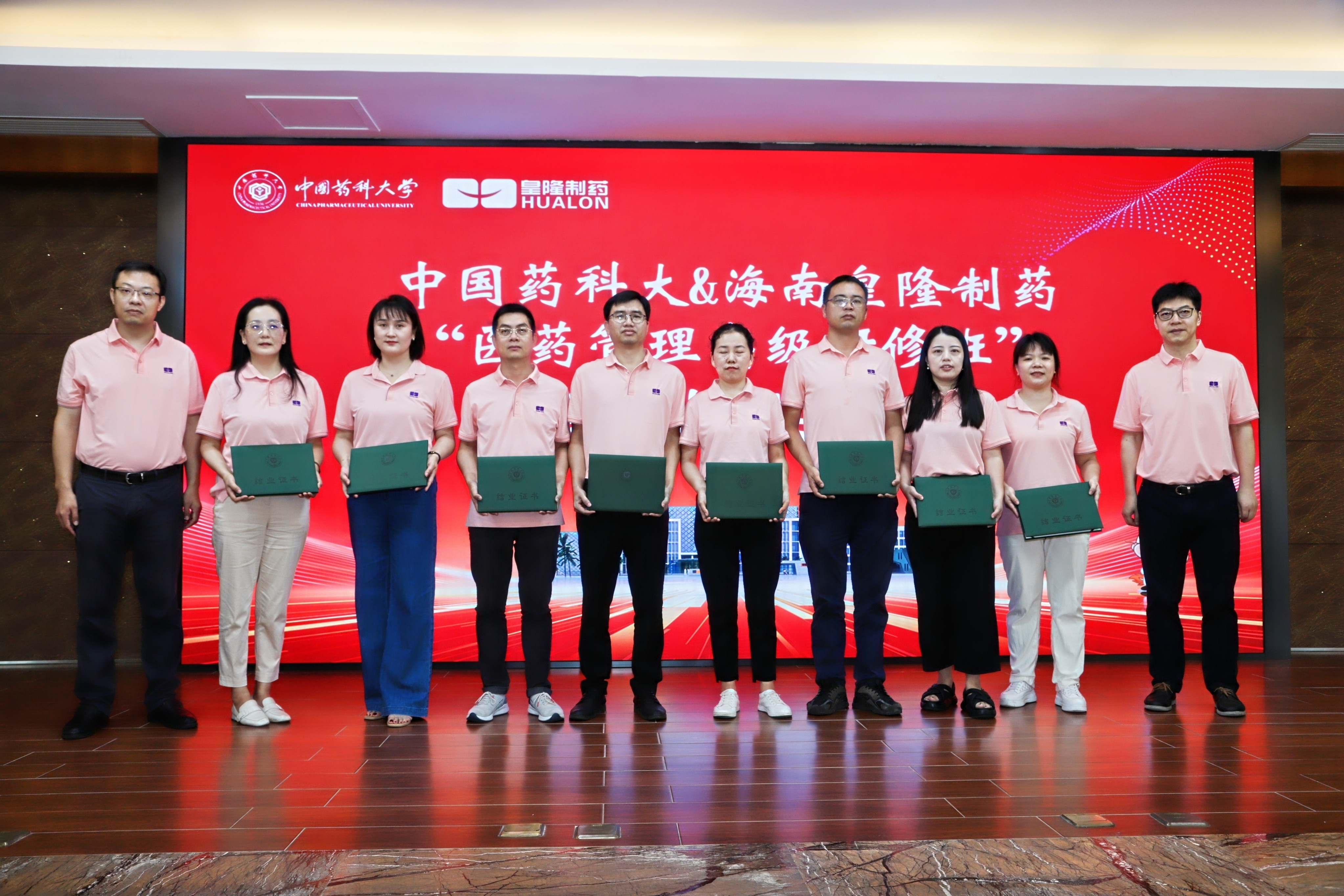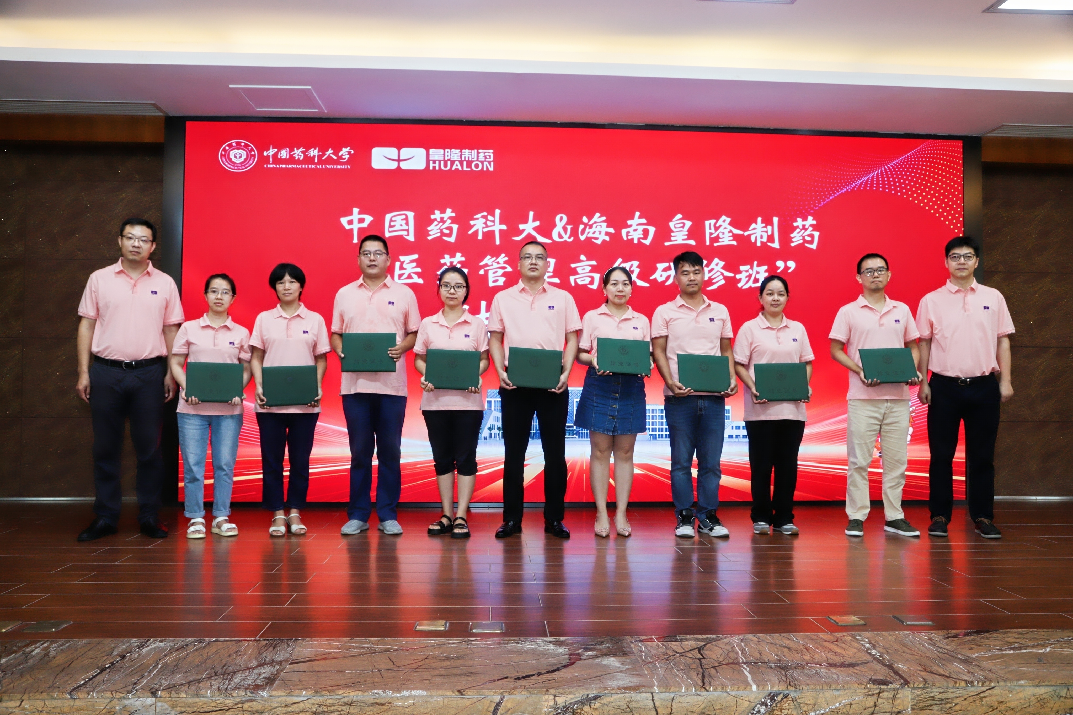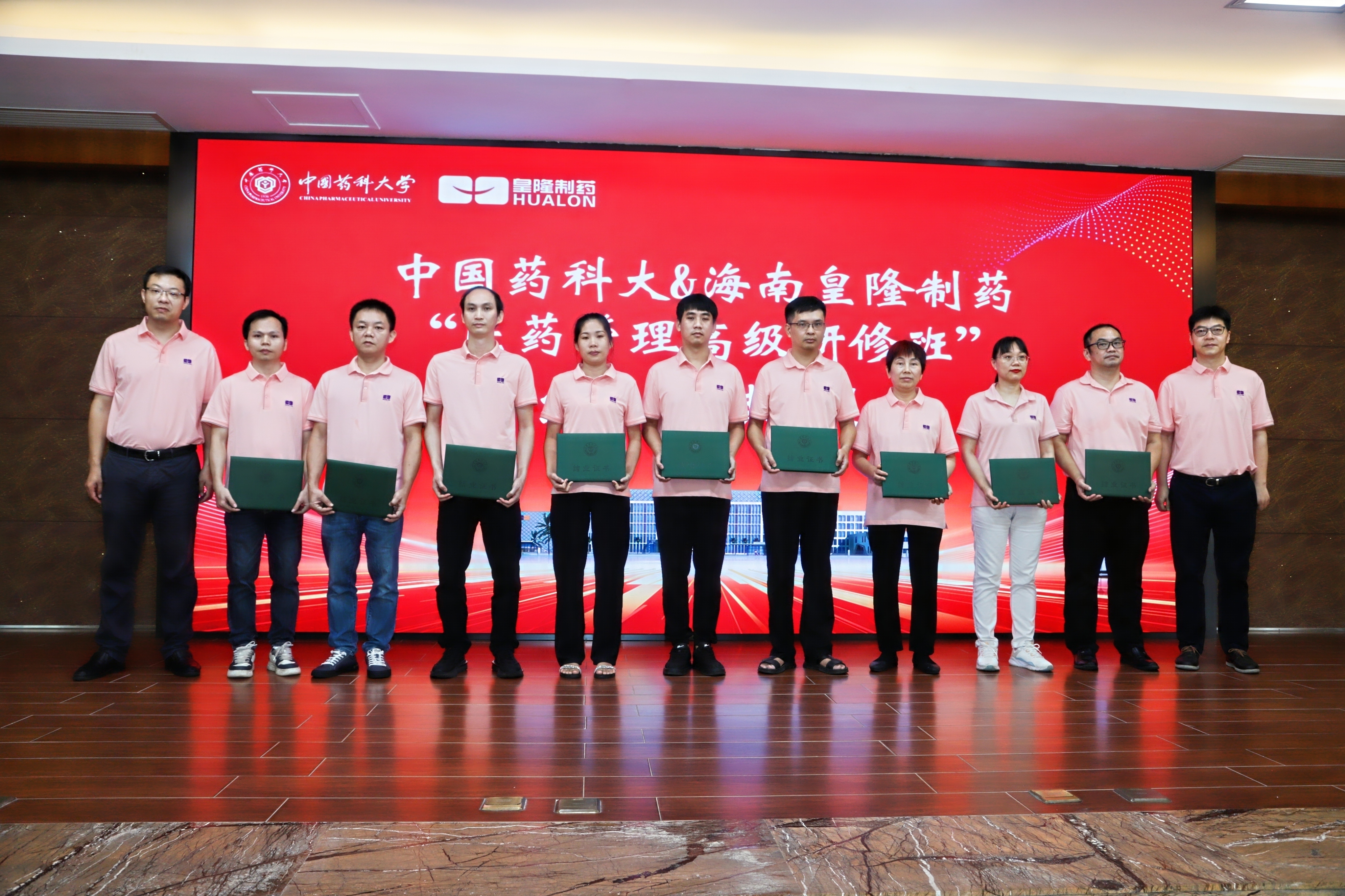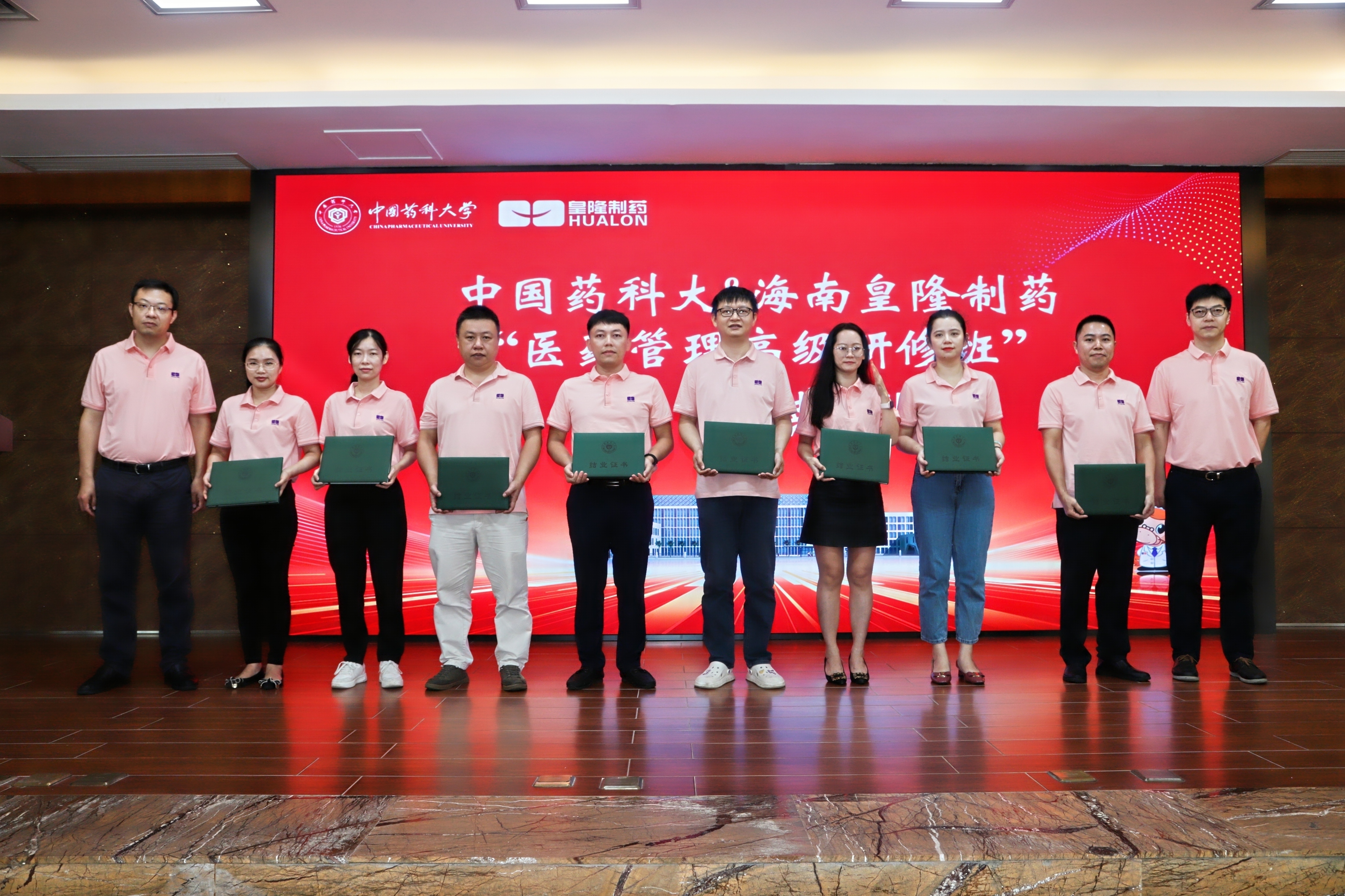 7月23日上午,中國藥科大學(xué)“專業(yè)學(xué)位研究生院級實(shí)踐基地”揭牌儀式暨中國藥科大學(xué)&海南皇隆制藥“醫(yī)藥管理高級研修班”結(jié)業(yè)典禮在海南皇隆制藥股份有限公司成功舉行。??趪腋咝录夹g(shù)產(chǎn)業(yè)開發(fā)區(qū)工委副書記、管委會主任李杉、中國藥科大學(xué)研究生院副院長李飛、中國藥科大學(xué)國際醫(yī)藥商學(xué)會副院長徐偉、海南皇隆制藥股份有限公司董事長陳益智、公司管理層以及54名學(xué)員共同參加了本次儀式。