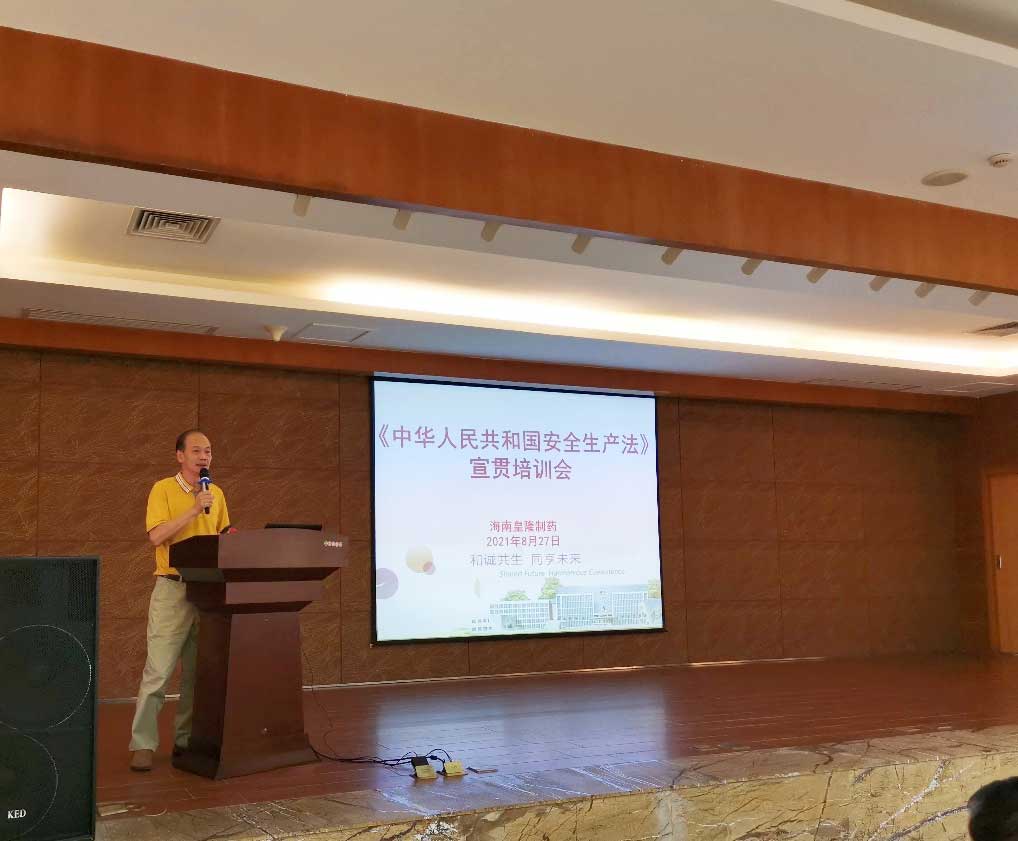 海南皇隆制藥股份有限公司高度重視此次新安全生產(chǎn)法的頒布實(shí)施,為了提高全體員工對(duì)新《安全生產(chǎn)法》的認(rèn)識(shí),全面加強(qiáng)安全生產(chǎn)法治觀念,提升企業(yè)安全管理水平,2021年8月27日組織開(kāi)展新《安全生產(chǎn)法》宣貫培訓(xùn)會(huì)議,公司安委會(huì)主任陳益智、副主任史江永、何晶及陳國(guó)華、馬和東、葉華等16名安委會(huì)成員、公司專職(兼職)安全員、各部門領(lǐng)導(dǎo)及骨干成員等參加了此次培訓(xùn)