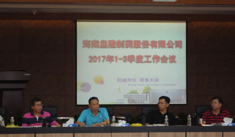 在這個寓意希望和豐收的季節(jié)里,海南皇隆制藥股份有限公司2017年前三季度工作報告分析會于14日在公司二樓大會議室召開,會議由陳益智總經(jīng)理主持,部門負責人及以上人員出席會議。