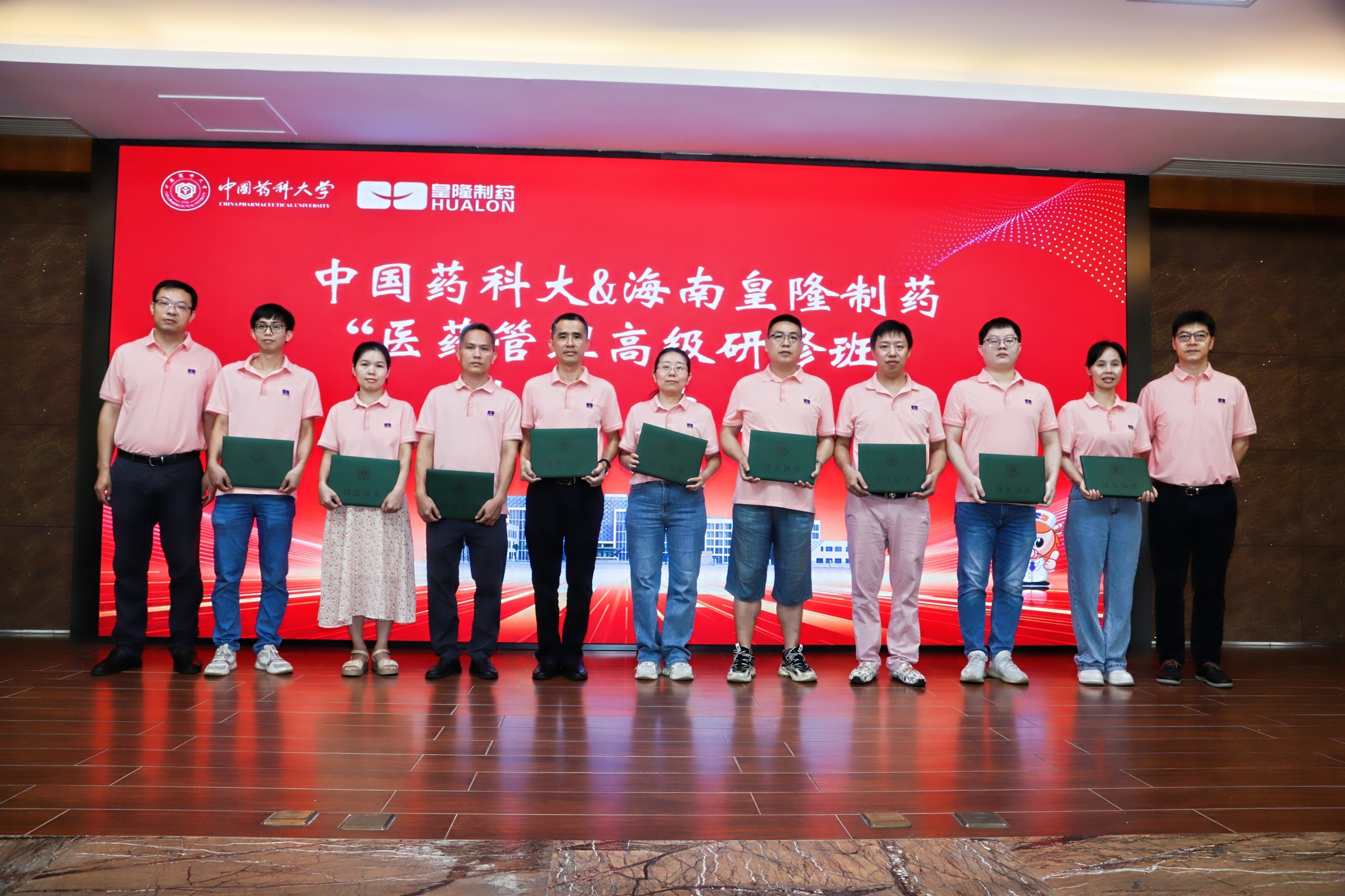 7月23日上午,中國藥科大學(xué)“專業(yè)學(xué)位研究生院級(jí)實(shí)踐基地”揭牌儀式暨中國藥科大學(xué)&海南皇隆制藥“醫(yī)藥管理高級(jí)研修班”結(jié)業(yè)典禮在海南皇隆制藥股份有限公司成功舉行。??趪腋咝录夹g(shù)產(chǎn)業(yè)開發(fā)區(qū)工委副書記、管委會(huì)主任李杉、中國藥科大學(xué)研究生院副院長李飛、中國藥科大學(xué)國際醫(yī)藥商學(xué)會(huì)副院長徐偉、海南皇隆制藥股份有限公司董事長陳益智、公司管理層以及54名學(xué)員共同參加了本次儀式。